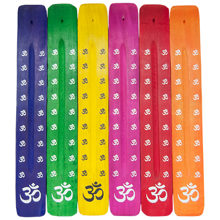 10" flat incense burner with Om symbol. Comes in blue, green, yellow, pink, red, and orange.